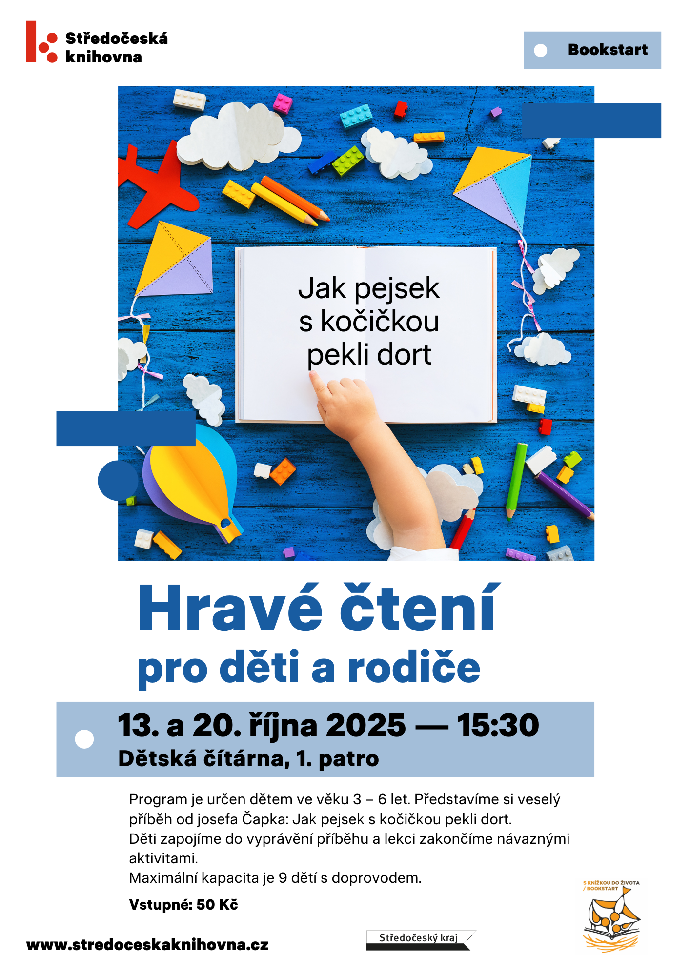 Tentokrát se v rámci Hravého čtení vrátíme ke klasice. Příběh Josefa Čapka Jak pejsek s kočičkou pekli dort, znají generace. Myslíte si, že už vás v něm nic nepřekvapí? Přijďte a přesvědčte se, že i staré známé příběhy se dají zažít jinak. Nebude chybět husí hlava, čtyři myši, špekové kůže a spousta dalších ingrediencí, které byste v knihovně nečekali.