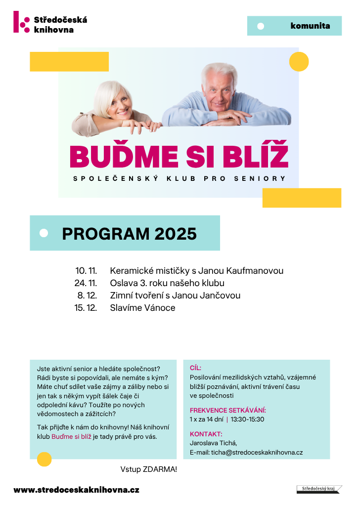 Oblíbený seniorský klub naleznete vždy v jednom cyklu pod názvem Buďme si blíž: společenský klub s programem na více termínů.