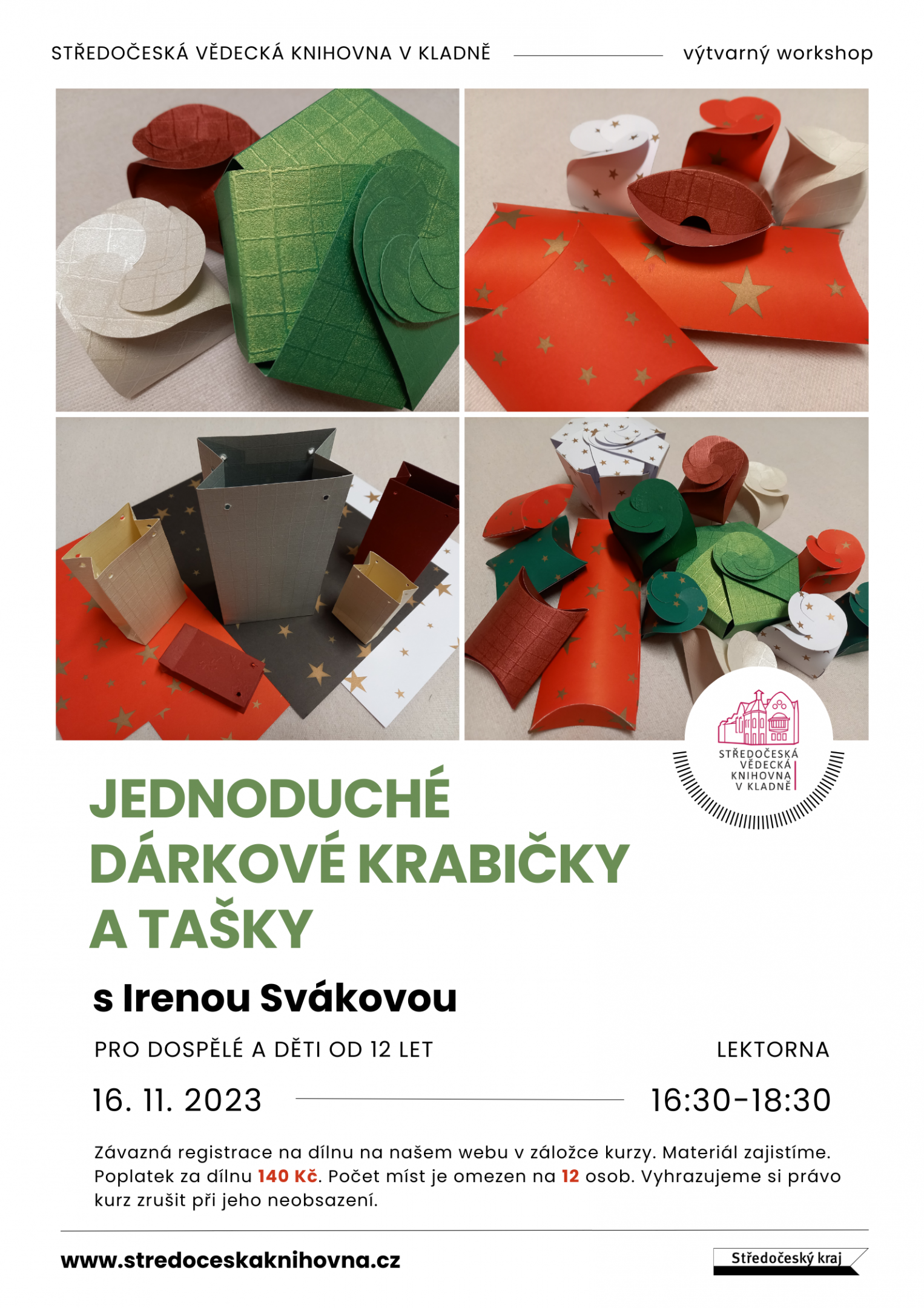Dáváte rádi svým blízkým dárky? A chtěli byste  je mít originálně zabalené? Naučíme se základy výroby jednoduchých skládaných a vystřihovaných krabiček nebo malých tašek. Bude záležet jen na vaší fantazii a tvůrčím nasazení, aby se dárek i jeho obal líbil.