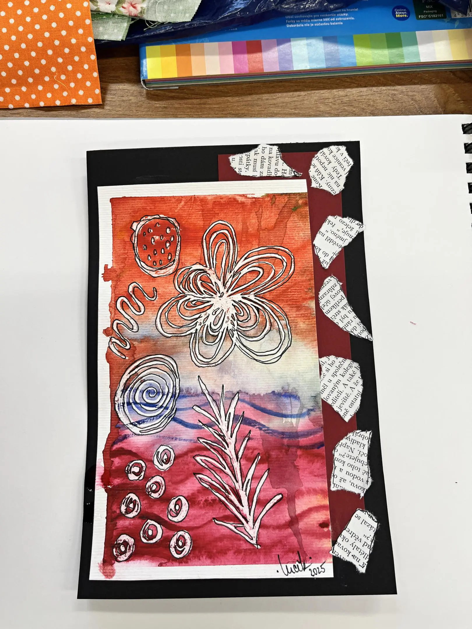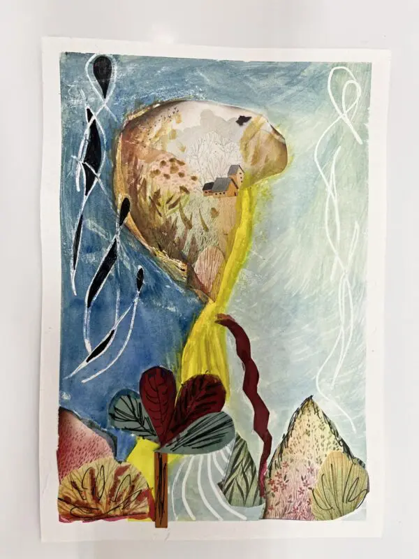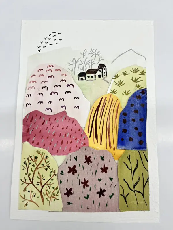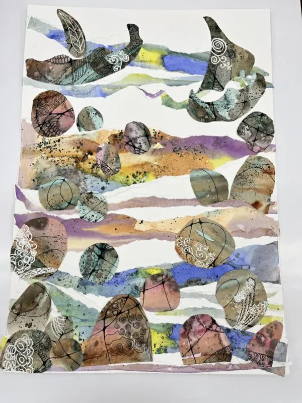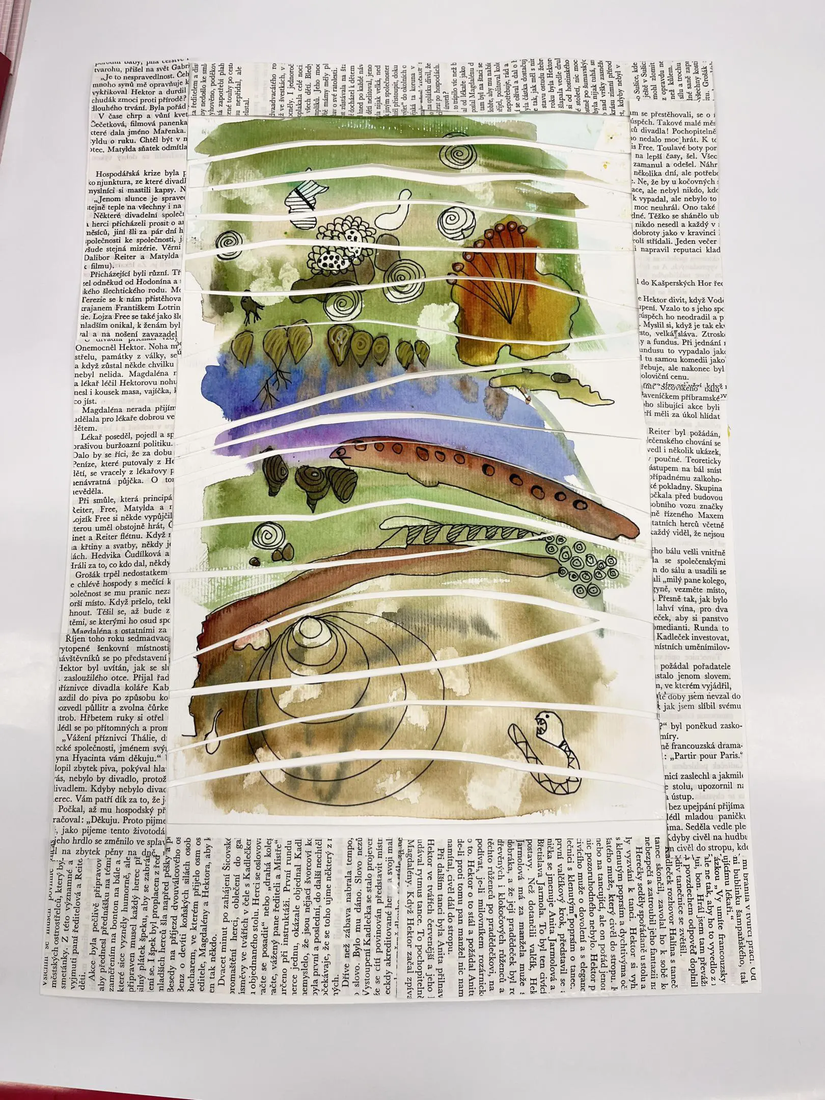 Kombinovaná technika opět trochu jinak. Základem zůstanou akvarelové barvy a linery jako v minulé hodině, ovšem tentokrát si s vytvořenými základy pohrajeme s nůžkami a lepidlem a pokusíme se z původně zcela náhodných motivů vytvořit koláž.