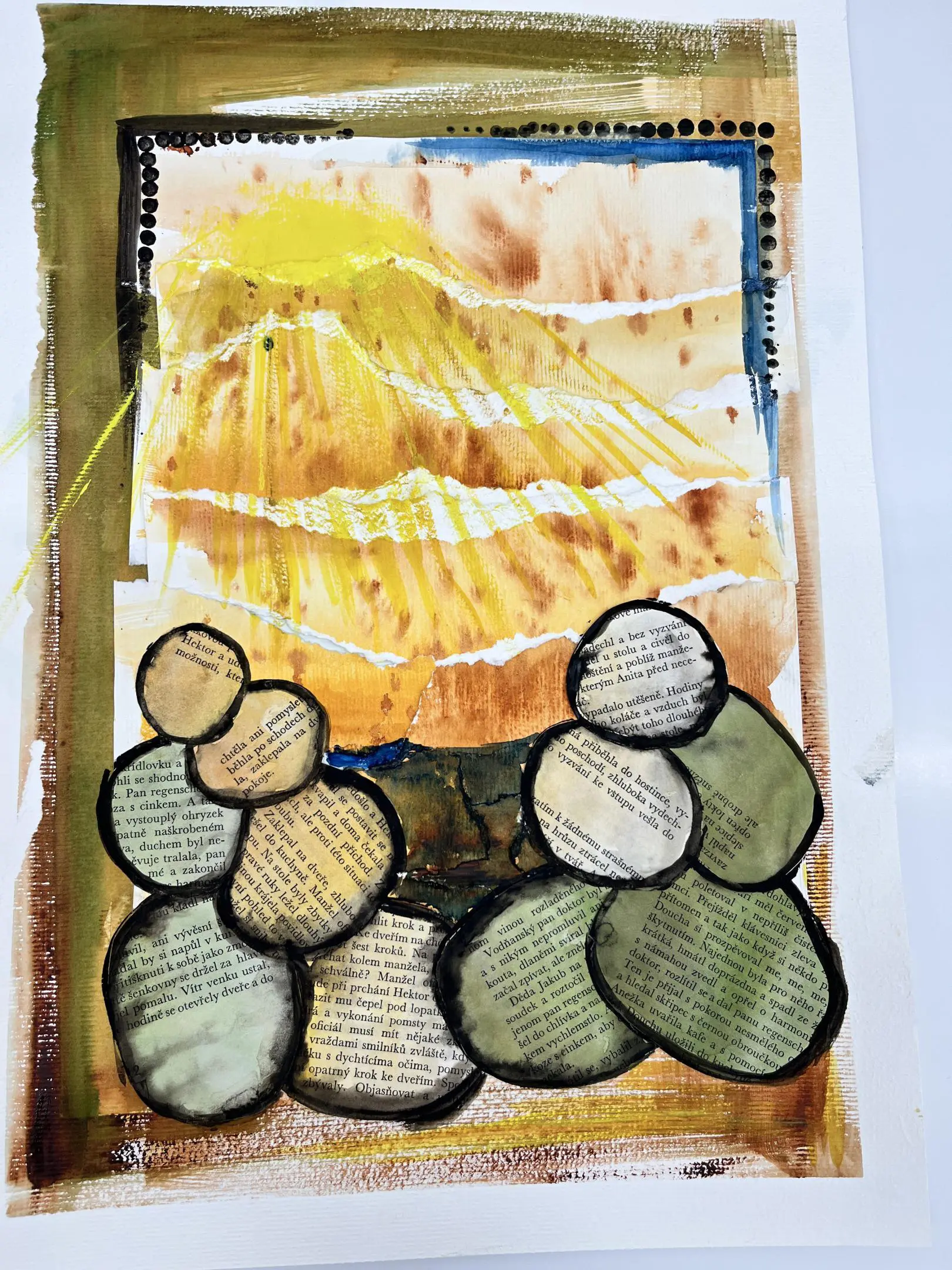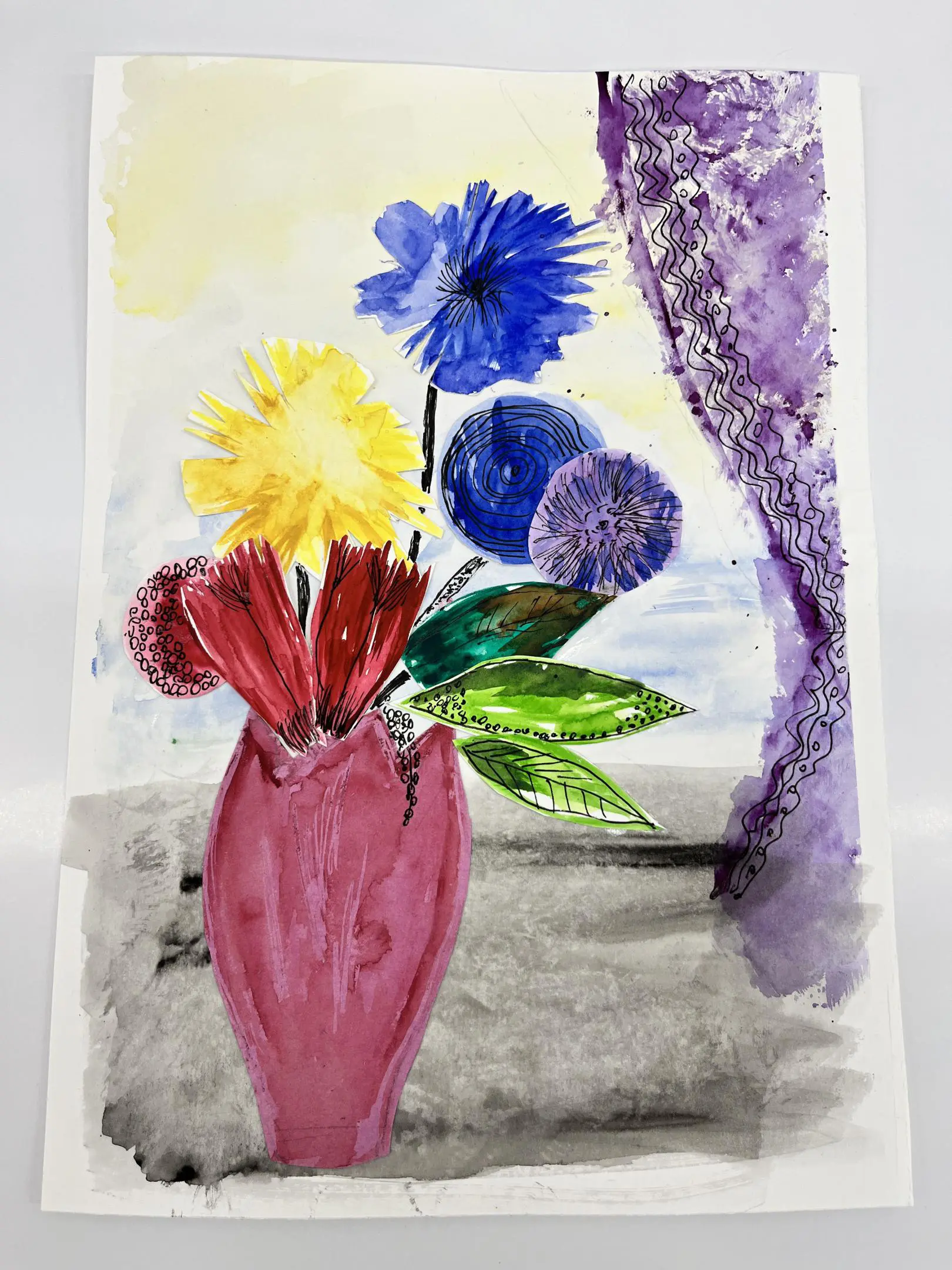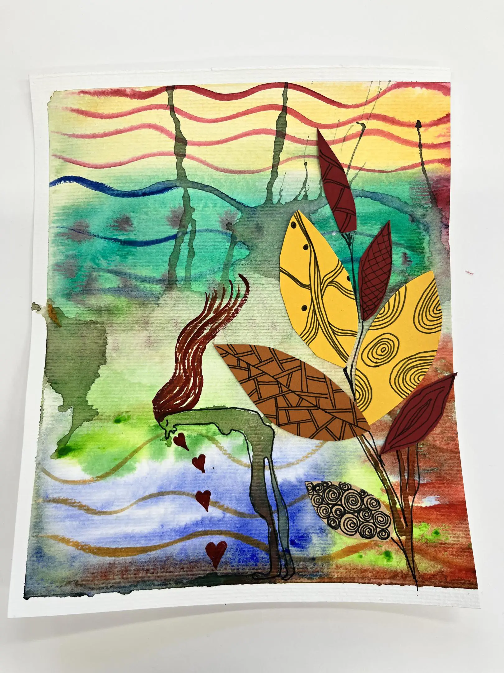 Kombinovaná technika opět trochu jinak. Základem zůstanou akvarelové barvy a linery jako v minulé hodině, ovšem tentokrát si s vytvořenými základy pohrajeme s nůžkami a lepidlem a pokusíme se z původně zcela náhodných motivů vytvořit koláž.