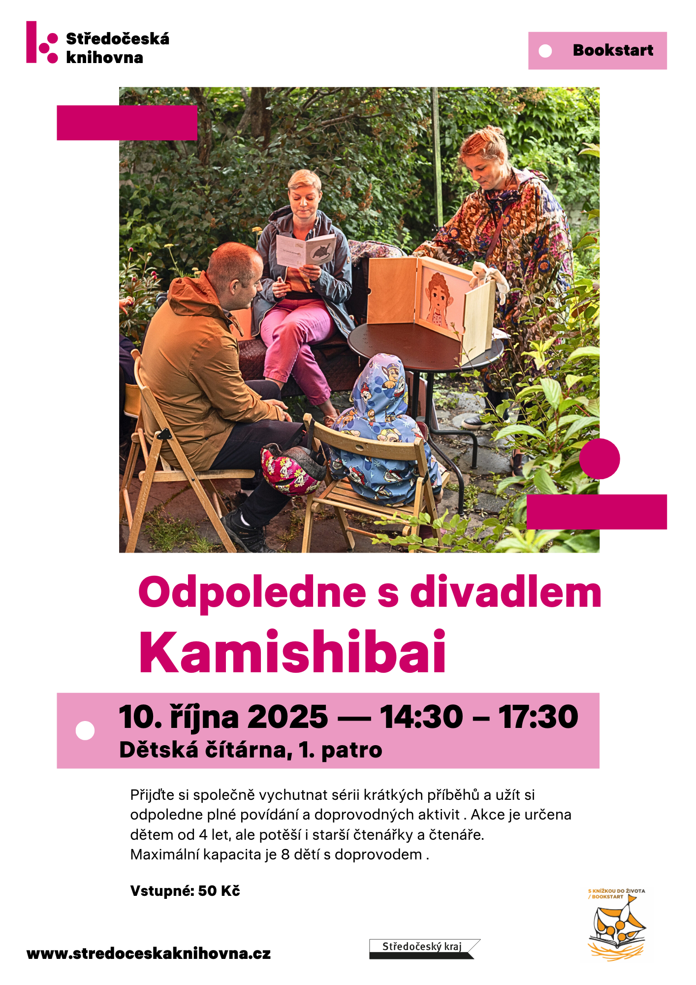 Kamishibai je tradiční japonské vyprávění s ilustracemi, které se odehrává v malém dřevěném divadélku – jako by ožívala obrázková kniha doprovázená vypravěčem. Přijďte si společně vychutnat sérii krátkých příběhů a užít si odpoledne plné povídání a doprovodných aktivit . Akce je určena dětem od 4 let, ale potěší i starší čtenářky a čtenáře.