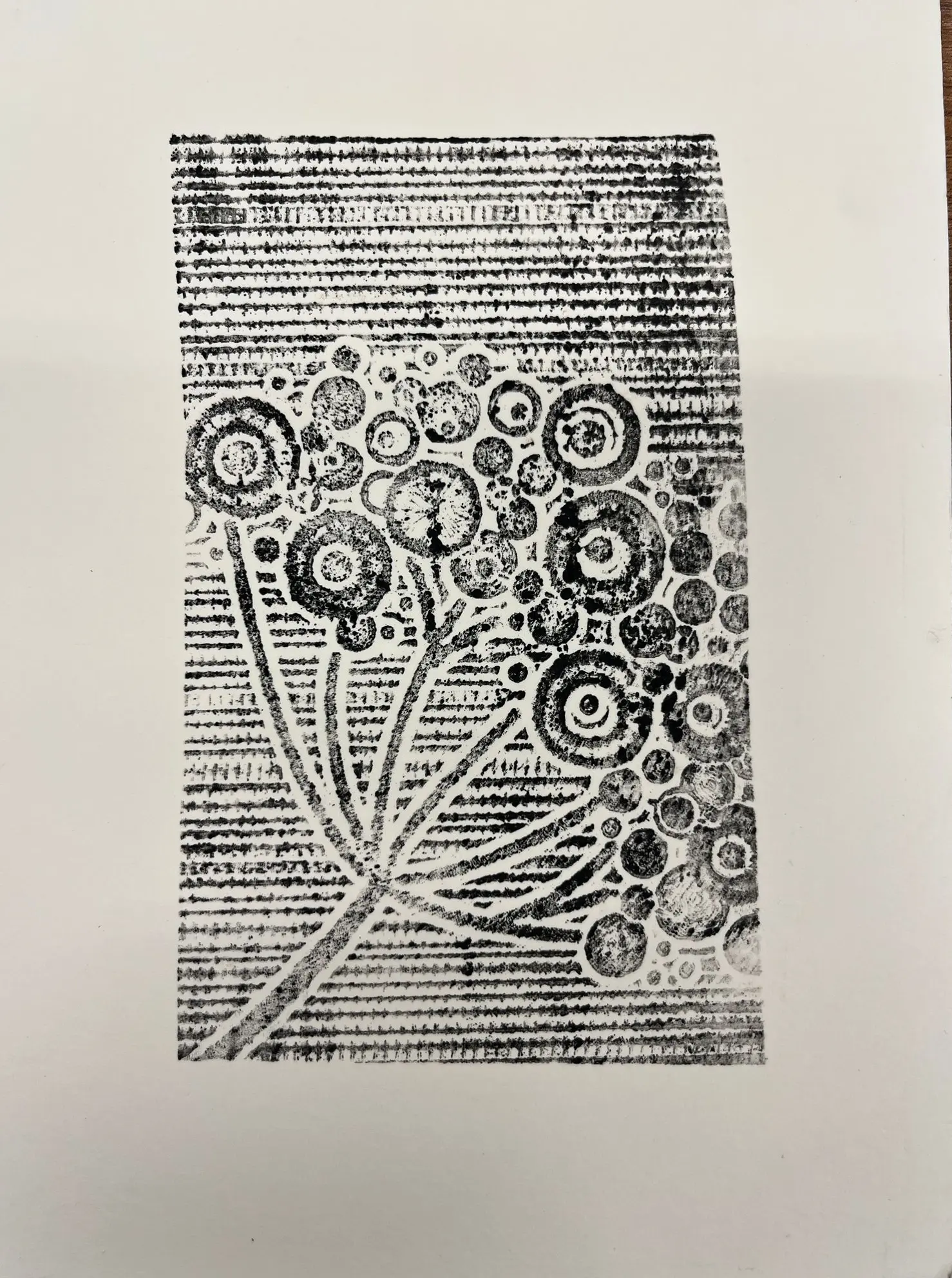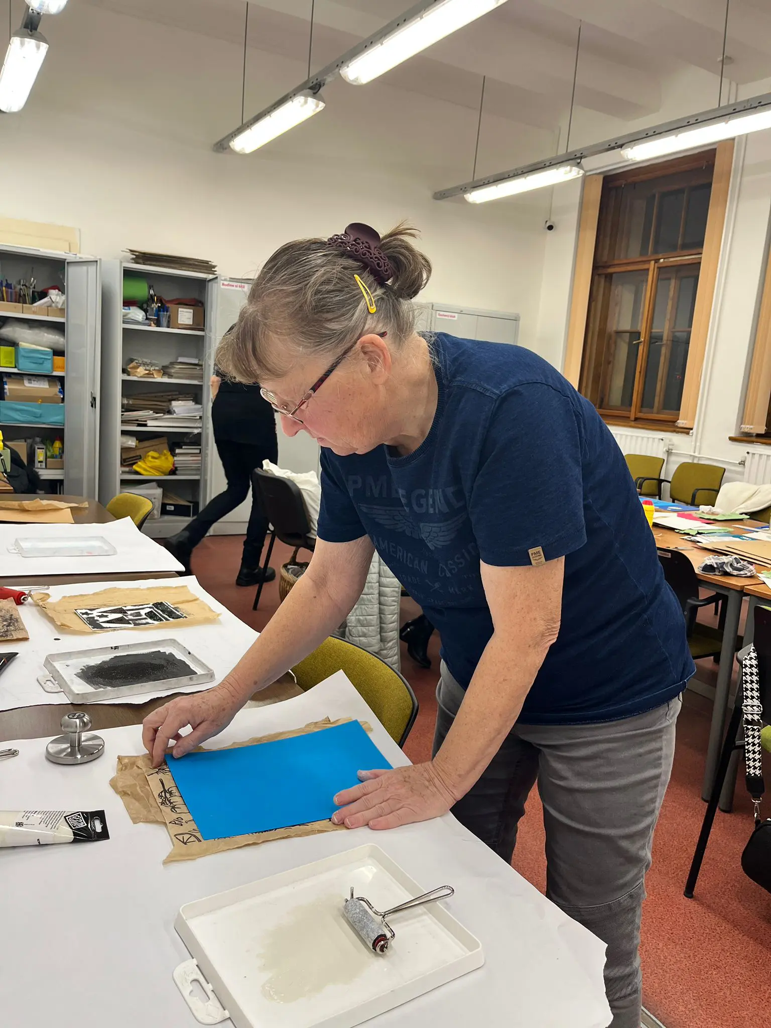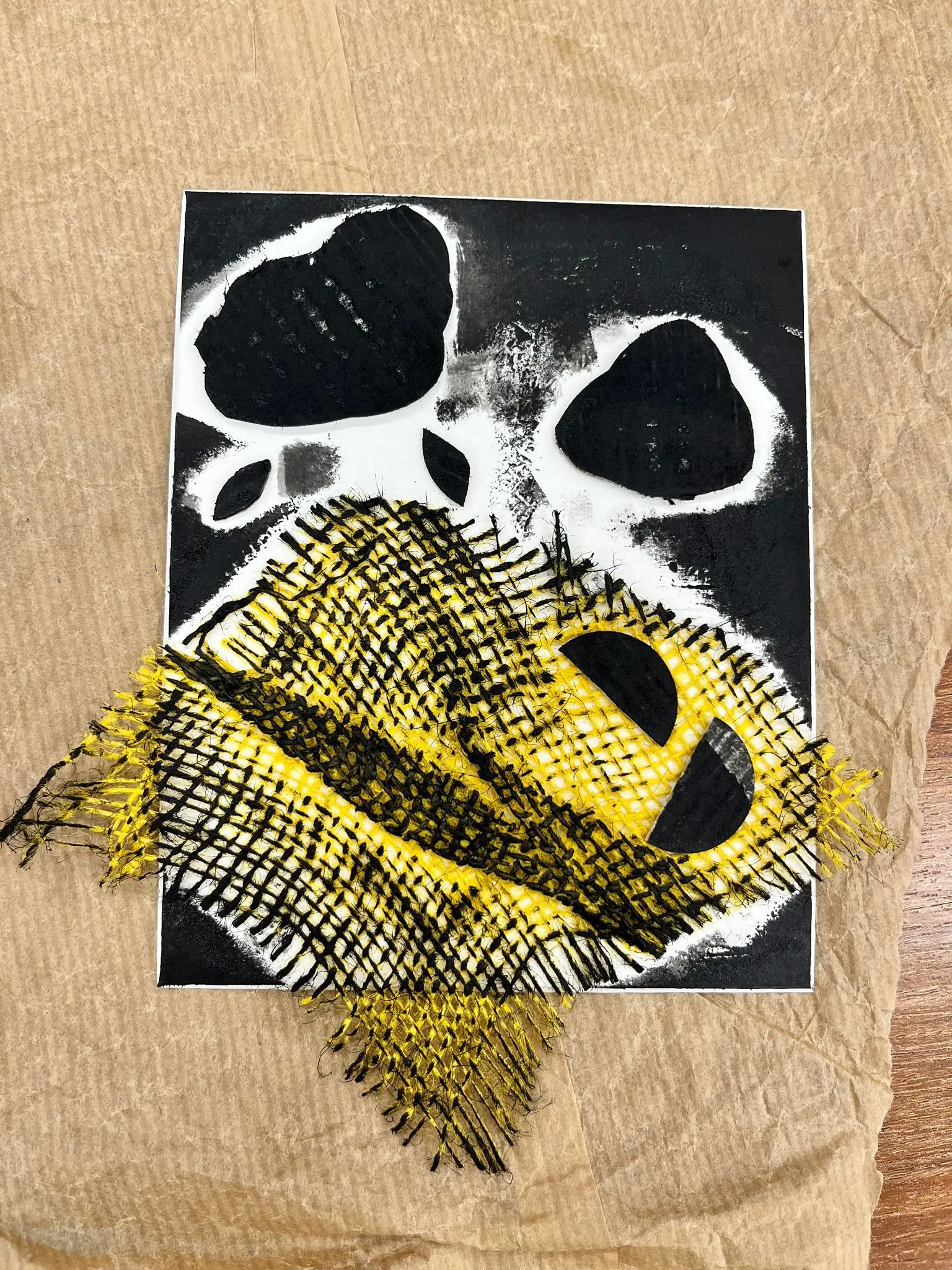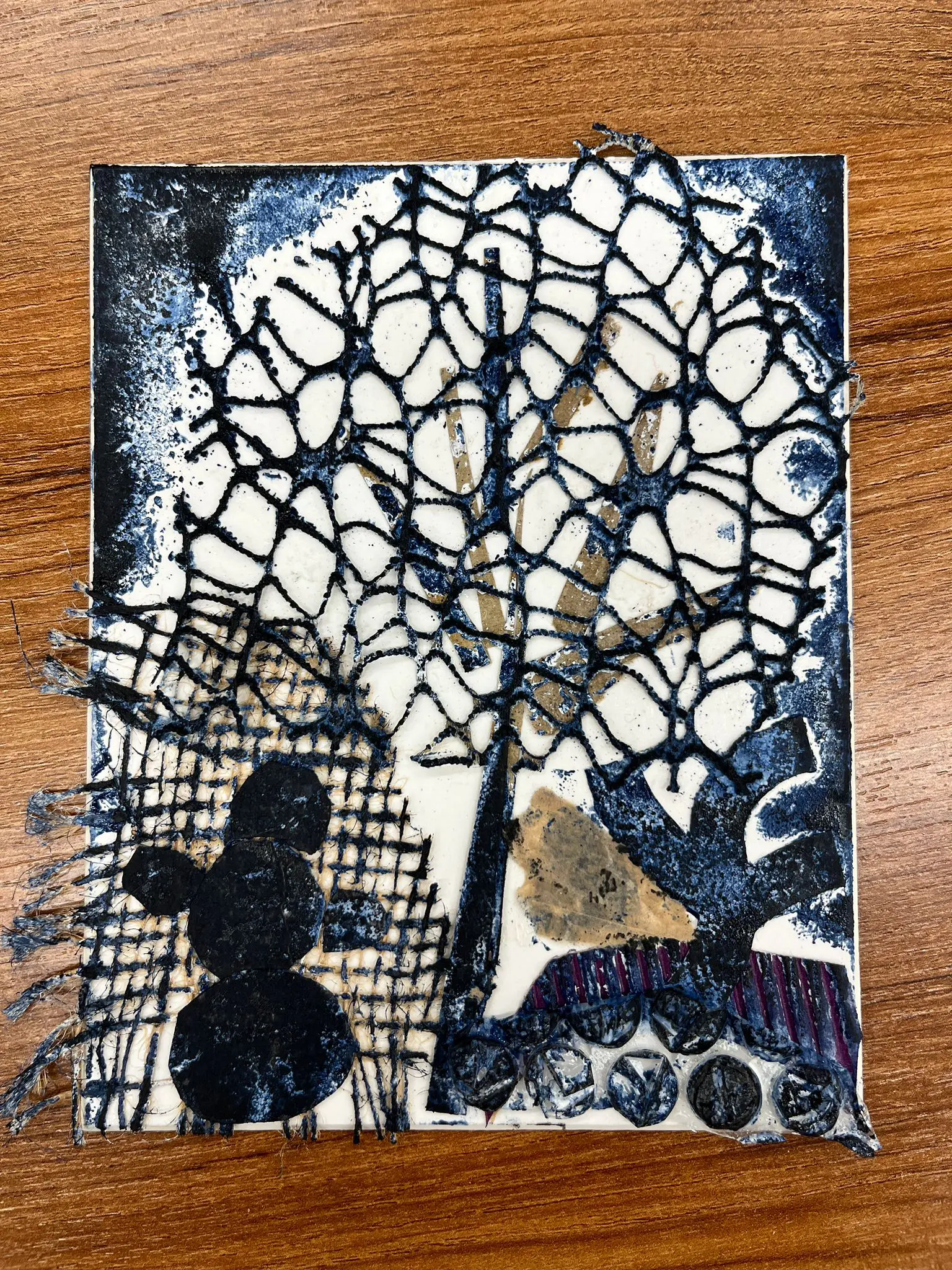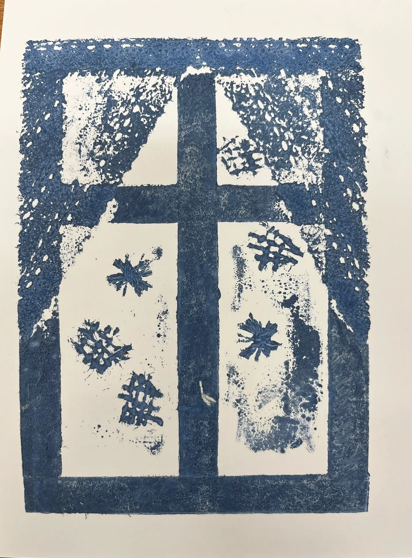 Vytvoříme si motiv z různě strukturovaných papírů, kartonů a lepenek a pak jej – stejně, jako to děláme s linorytem – otiskneme na čistý list papíru. Výhodou u této techniky je, že části obrázku, které se vám nebudou pozdávat, není problém odstranit a nahradit. Což by nám linoryt nedovolil.