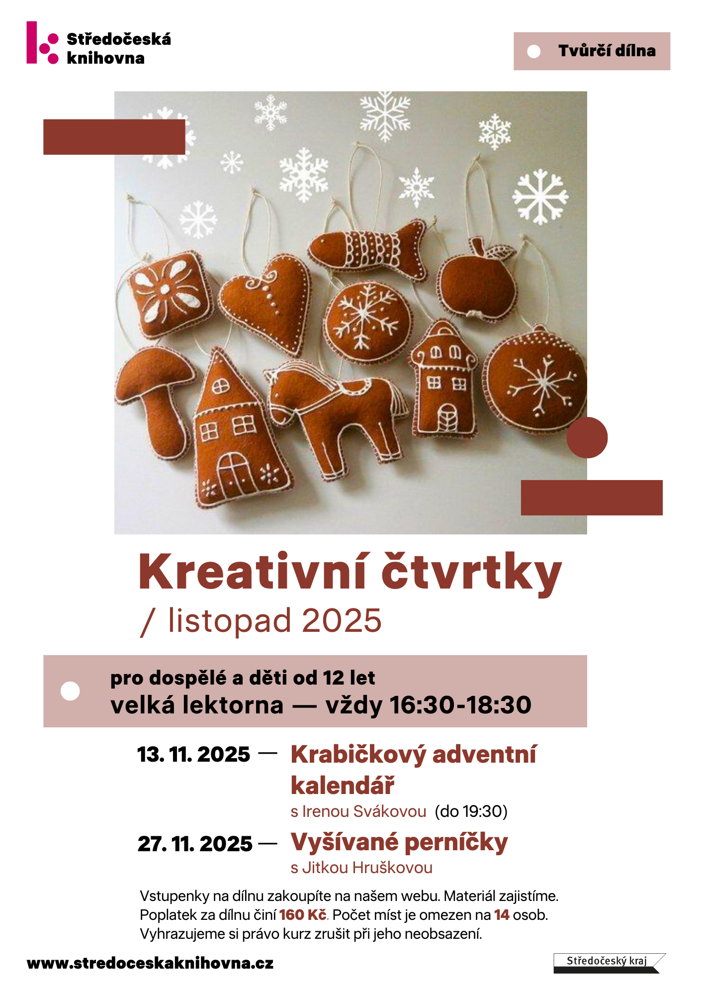 Výsledkem budou krásné ozdoby, které potěší vás, vaši rodinu nebo třeba přátele pod stromečkem. Přijďte si užít tvořivý podvečer plný jehličí, smíchu a perníčků, které se nikdy nespálí.