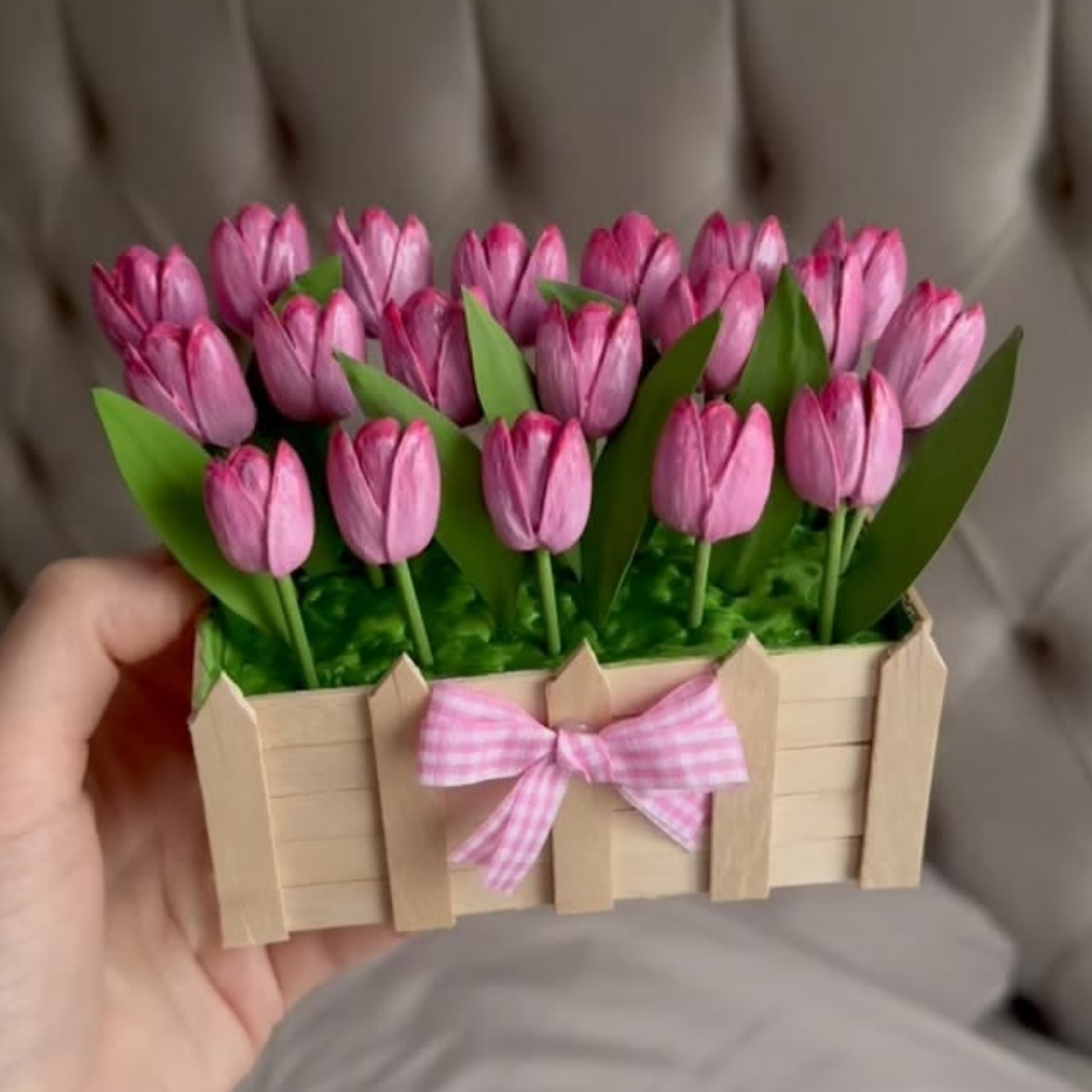S pomocí pistáciových oříšků, lékařských špachtlí, tavné pistole a barev si vytvoříte tulipánovou záplavu, která vám určitě nezmrzne ani při jarních mrazících.